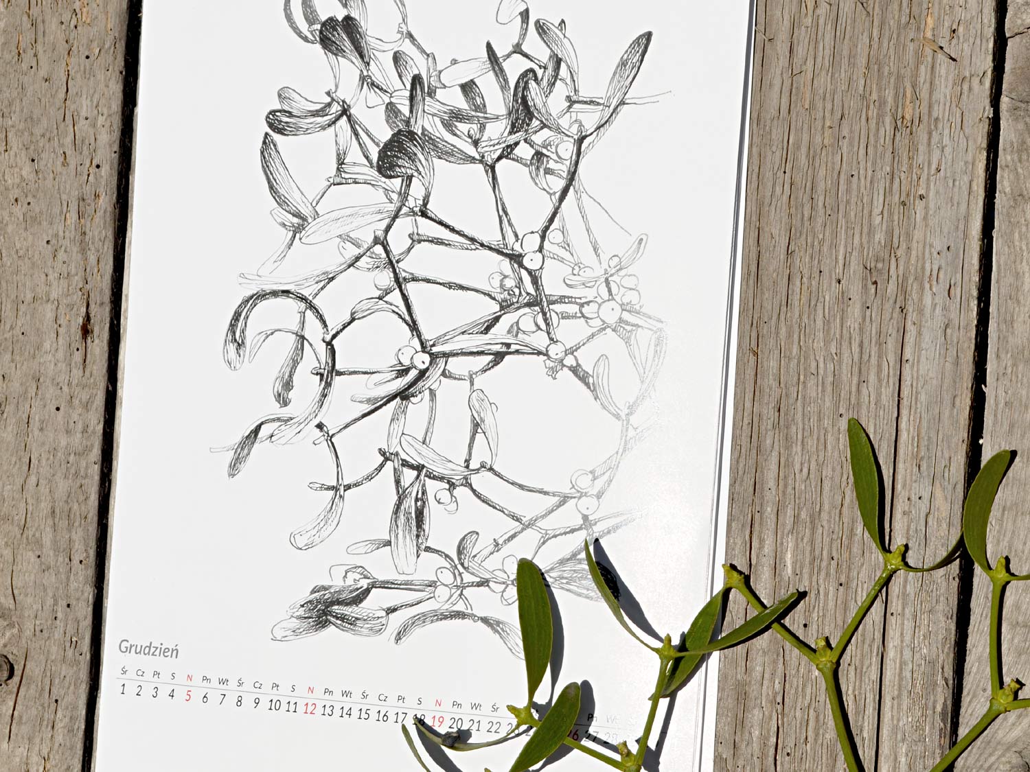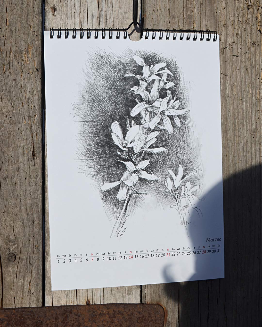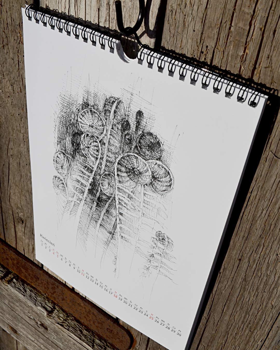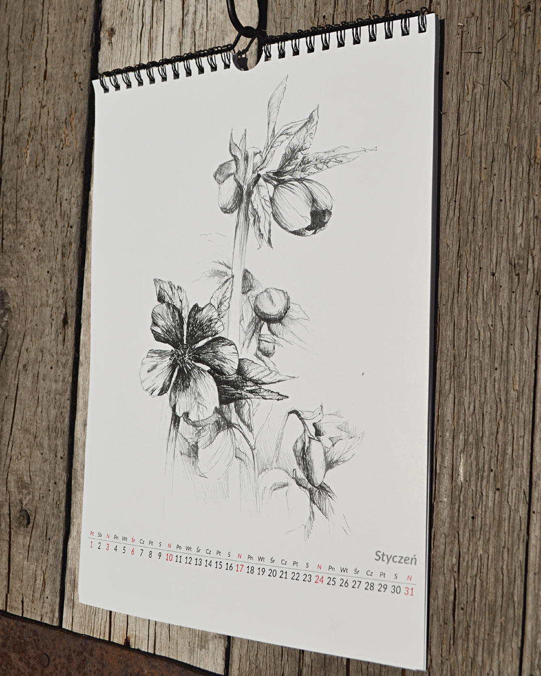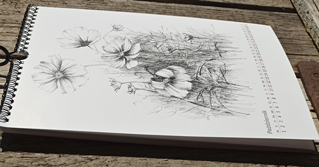 kalendarz przygotowany na 2021 z przedrukami rysunków roślin i kwiatów