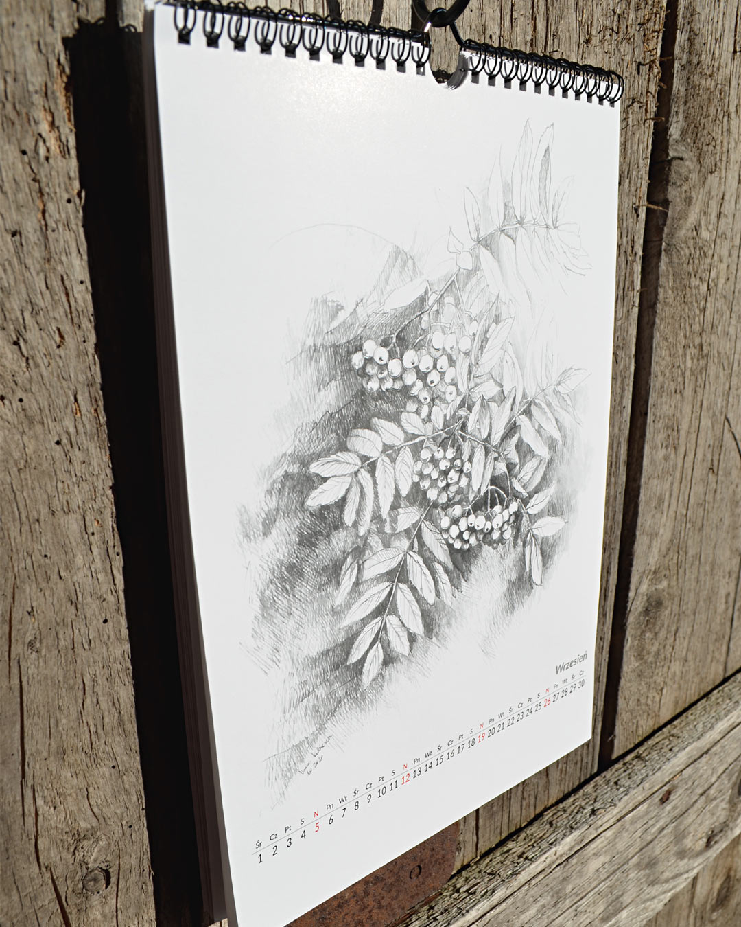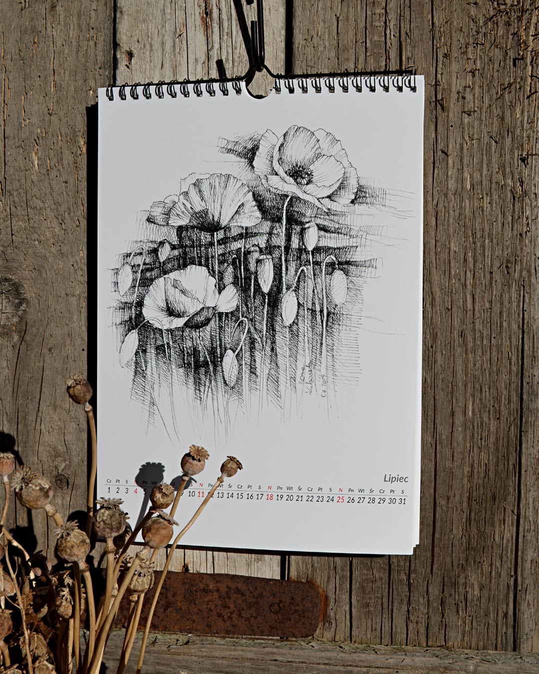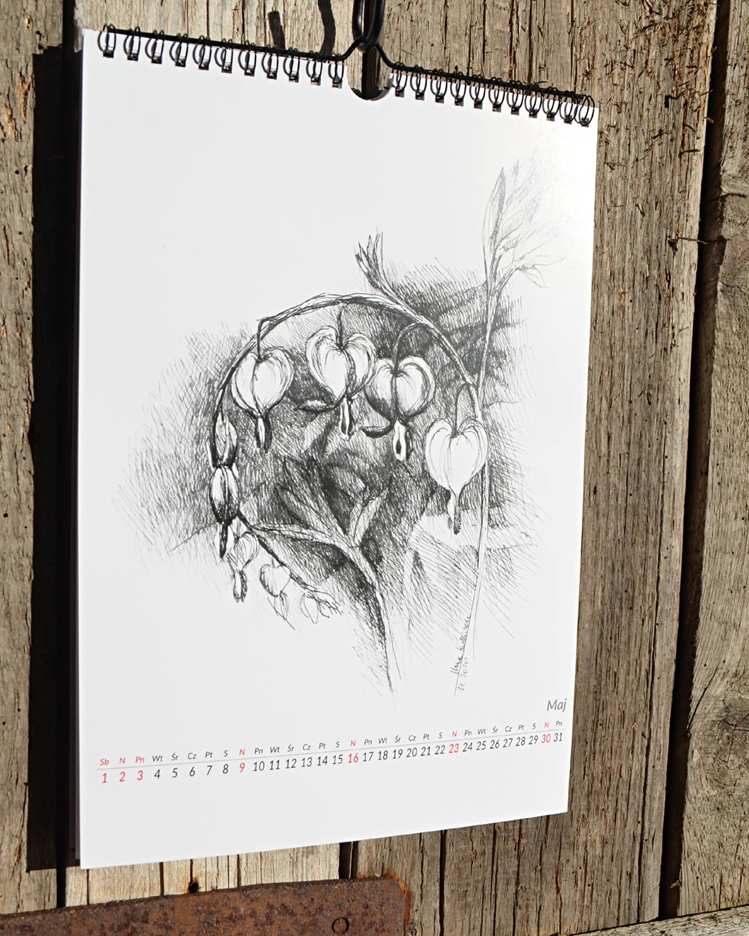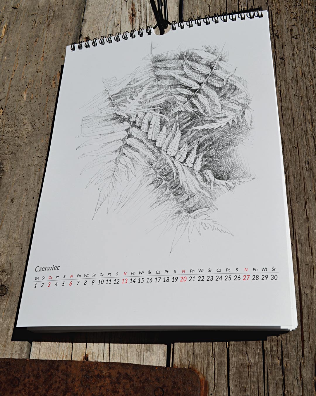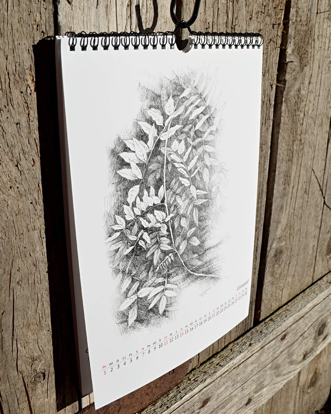 kalendarz przygotowany na 2021 z przedrukami rysunków roślin i kwiatów